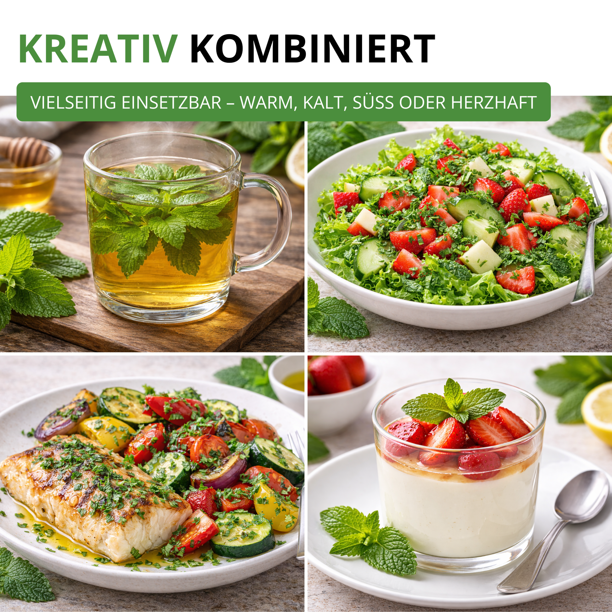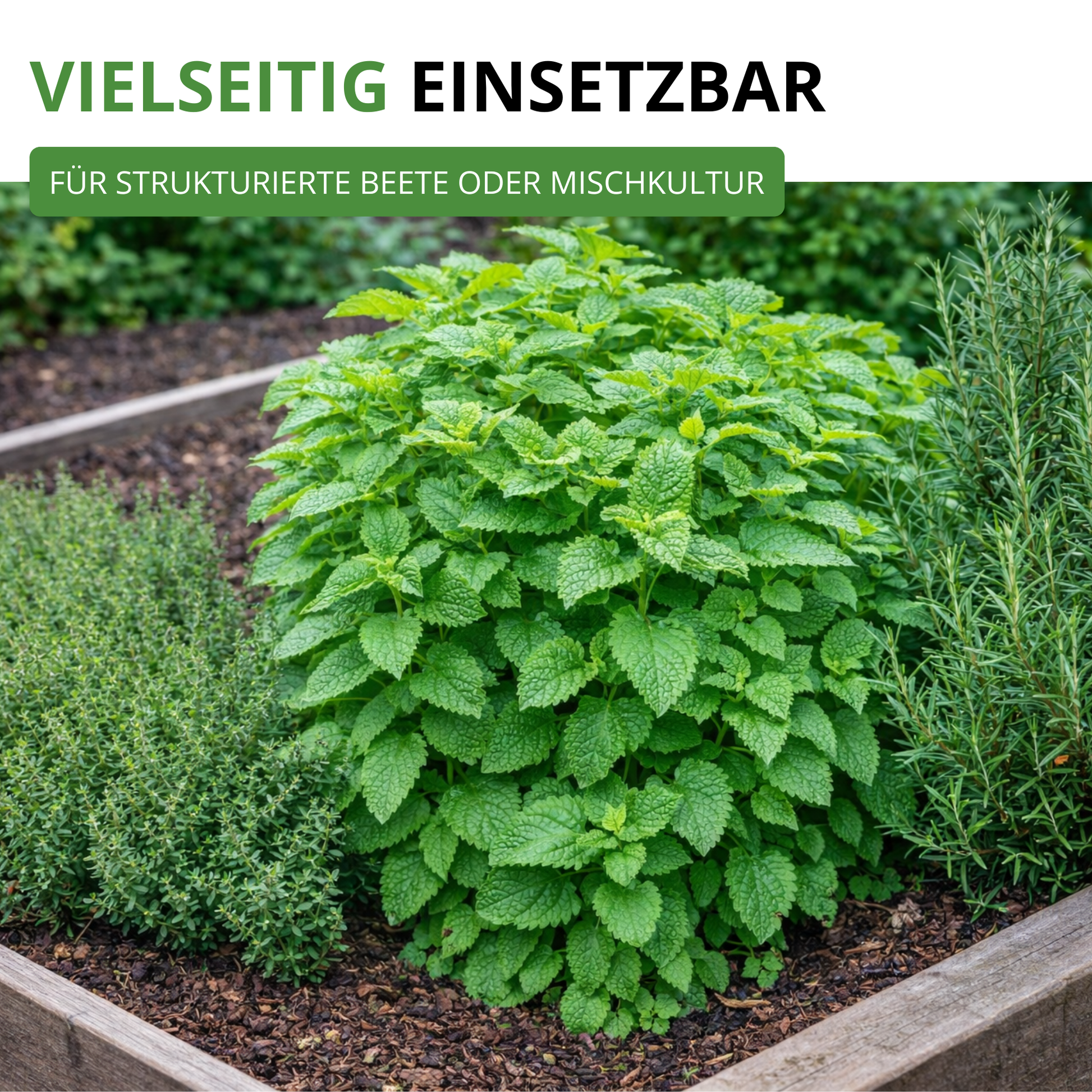 Mehrjähriges Tee- und Würzkraut mit erfrischendem Zitronengeschmack. Robuste und pflegeleichte Staude mit einer Höhe von 50 - 100 cm. Neigt zum Wuchern.