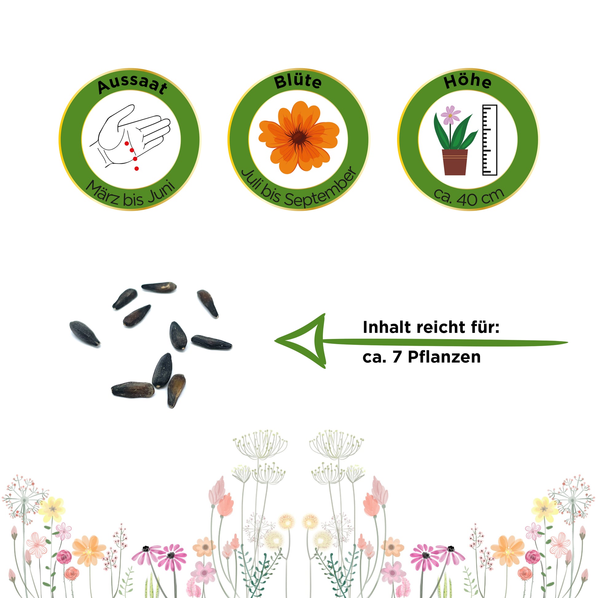 Aussaat: Vorkultur von März bis April oder ab Mitte Mai bis Juni direkt ins Freiland säen. Etwa 2-3 cm tief in Aussaaterde einsetzen.